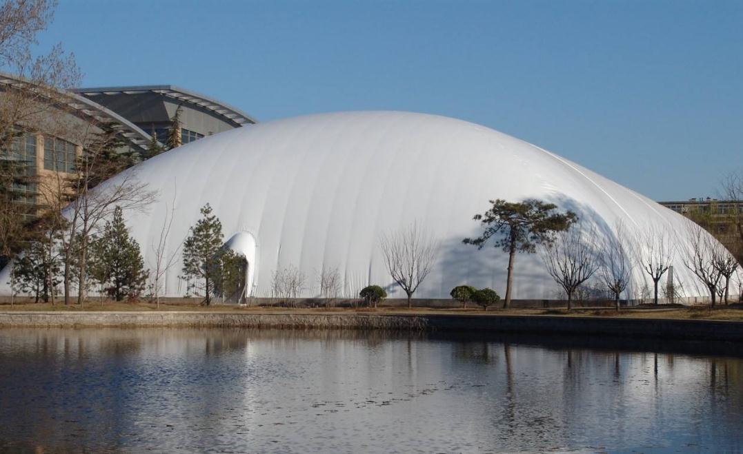 充氣膜體育館是用特殊的建筑膜材做外殼,配備一套智能化的機(jī)電設(shè)備在氣膜建筑內(nèi)部提供空氣的正壓,把建筑主體支撐起來的一種建筑結(jié)構(gòu)系統(tǒng)。