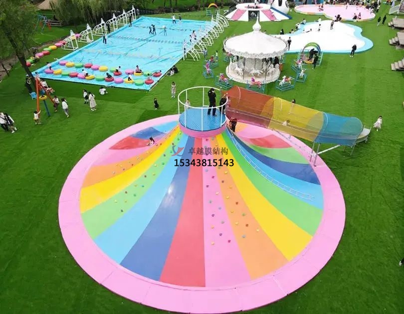 玩法:小朋友們拉著繩子,沿著火山坡往山頂攀爬,由于繩子是擺動的,坡面也是非常軟,非??简?yàn)小朋友的手臂力量,一般的小朋友需要在大人的協(xié)助下一起完成,更好的體現(xiàn)了親子互動的效果。