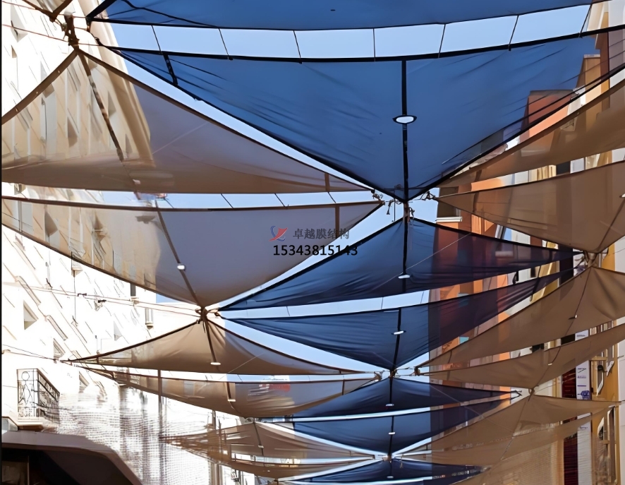 經(jīng)濟環(huán)保,綠色之選:在經(jīng)濟成本方面,景觀膜結(jié)構(gòu)施工過程簡便高效,工期相比傳統(tǒng)建筑大幅縮短。膜材與骨架在工廠預(yù)制完成后,現(xiàn)場只需進行快速組裝與連接,減少了施工周期內(nèi)的人力、物力投入。同時,其材料可回收利用率高,在結(jié)構(gòu)使用壽命結(jié)束后,大部分材料能回收再加工,降低了資源浪費與環(huán)境負擔,符合當下綠色建筑與可持續(xù)發(fā)展的理念,實現(xiàn)了經(jīng)濟效益與環(huán)保效益的雙贏。