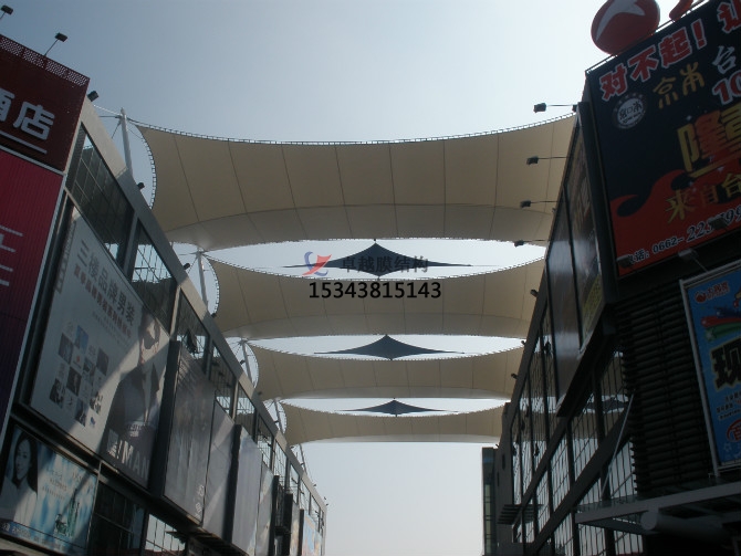 2.經(jīng)濟性:由于膜材具有一定的透光率,白天可減少照明強度和時間,能很好地節(jié)約能源。同時夜間彩燈透射形成的絢爛景觀也能達到很好的廣告宣傳效益