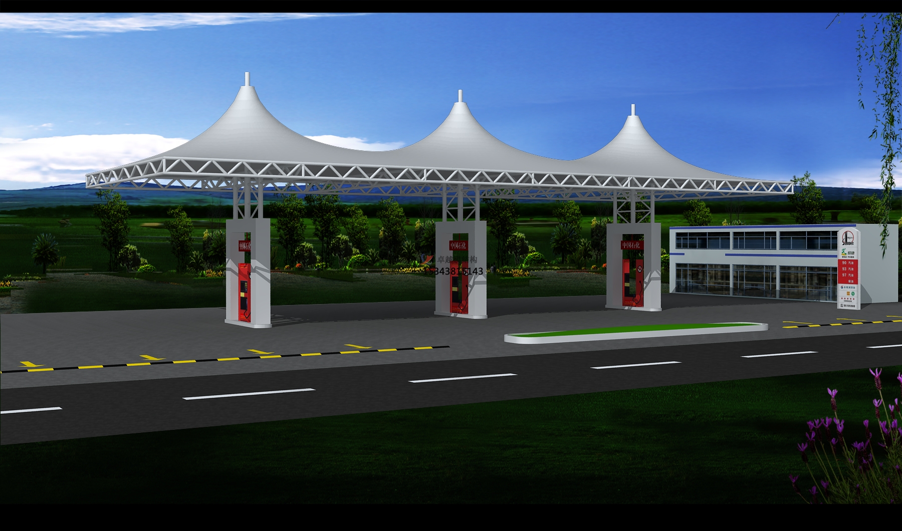 加油站加氣站的初始態(tài)設計是一個需要反復修改,反復商榷討論的過程,當基本形態(tài)確定后需要考慮它的荷載態(tài)。膜材是比較輕的,搭建而成的膜結(jié)構(gòu)和鋼材建筑、混凝土建筑相比重量也非常的輕,因而在承載能力上有一定的欠缺,需要多加考慮,不過重量輕的同時也說明加油站加氣站具有很好的地震適應性,發(fā)生倒塌的時候不會造成嚴重后果。