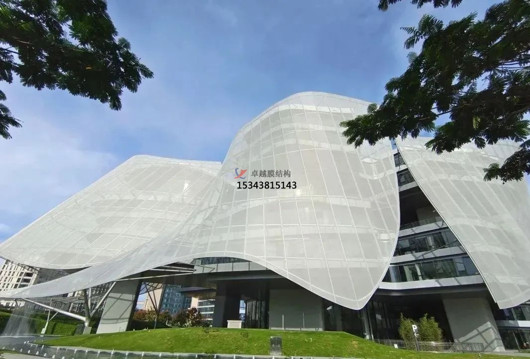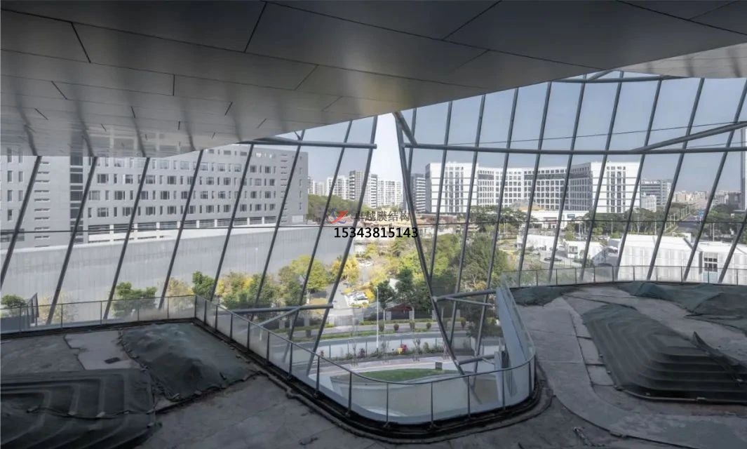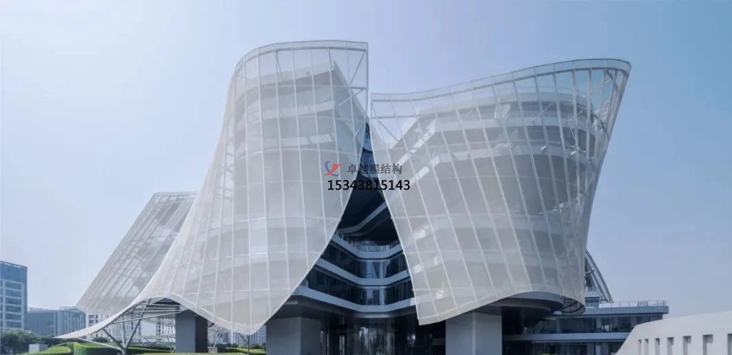 該項(xiàng)目占地面積1.5萬平方米(約16.15萬平方英尺),總建筑面積為6.1萬平方米(約65.66萬平方英尺)。它采用星形布局,從中央中庭向六個(gè)有機(jī)分支伸出六條支臂。半透明的PTFE材質(zhì)薄膜覆蓋在外部,與建筑物保持一定的距離,不僅能夠減輕日照強(qiáng)度,還可以在炎熱的季節(jié)為建筑物提供通風(fēng)。