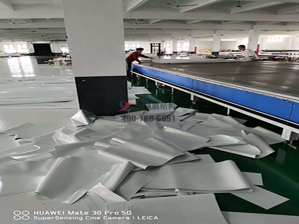 4、加工制作場地應平整,加工環(huán)境應滿足一定溫、濕度的要求。存放膜材的工作平臺應干燥無污物,整個加工制作過程應保持膜材清潔。