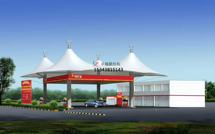 膜結(jié)構(gòu)加油站罩棚的篷布材質(zhì)是膜結(jié)構(gòu),而膜材的更大特點(diǎn)是強(qiáng)度高、耐久性好、防火難燃、自潔性好,不受紫外線影響,使用壽命長,一般15-30年。具有高透光率,透光率為13%,對熱能反射率73%,熱吸收量很少。正是因?yàn)檫@種劃時代的膜材料的發(fā)明,使膜結(jié)構(gòu)加油站罩棚成為現(xiàn)代化的永久建筑。
