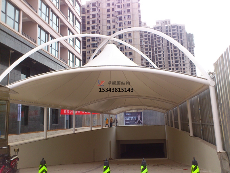 1、建筑膜材——車庫入口膜結構雨棚的主力軍