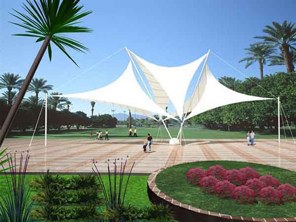 PVDF膜結構一般是由PVC膜結構材料組成的膜結構工程, PVC膜結構材料是一般膜結構公司用的膜結構材料,PVC膜結構材料是由膜結構聚酯纖維加PVC膜結構材料涂層而成,是在PVC膜結構材料涂層材的表面處理上涂以數(shù)micron厚膜結構材料的壓克力樹脂(acrylic),以改善PVC膜結構材料防污性,提高PVC膜結構材料使用年限、提高PVC膜結構材料的防火性還有PVC膜結構材料強度。