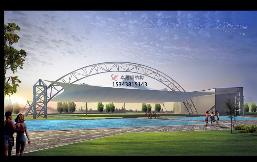 1、反吊膜結(jié)構(gòu)柱頭:桅桿頂部與膜連接處的節(jié)點(diǎn)可做成浮動(dòng)式或固定式,浮動(dòng)式節(jié)點(diǎn)的浮動(dòng)環(huán)在不平衡力作用下會(huì)發(fā)生左右擺動(dòng),使桅桿兩側(cè)的荷載作用趨于平衡,從而降低了桅桿頂部的水平位移,并可避免此處膜面出現(xiàn)褶皺。當(dāng)桅桿承受的非對(duì)稱荷載較大時(shí),宜采用浮動(dòng)式節(jié)點(diǎn)。拉索與桅桿頂部可通過索端連接件與桅桿頂部的鋼板相連接。膜往往通過螺栓或卡具錨固在頂部圓環(huán)或圓鋼板上。此部位的膜面積急劇減小同時(shí)荷載又很大,應(yīng)采用加強(qiáng)層對(duì)頂部的膜進(jìn)行加強(qiáng)。在桅桿頂部通常設(shè)有金屬帽,兼具防水和美觀功能。