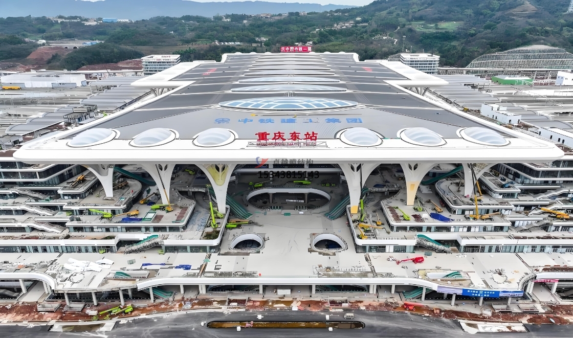 重慶東站:正在建設(shè)的重慶東站屋蓋體系采用了“管桁架鋼結(jié)構(gòu)+橢圓形天窗+樹形支撐柱+ETFE氣枕膜”形式。這種設(shè)計不僅實現(xiàn)了大跨度的覆蓋,還通過ETFE氣枕膜的應(yīng)用為整個項目增添了獨特的視覺效果。