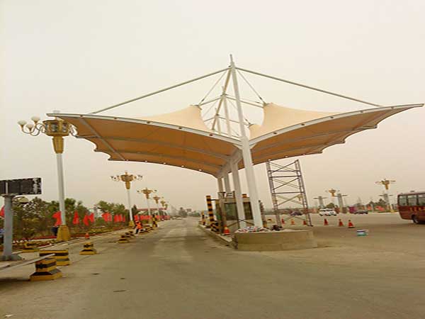 淮北卓越膜結(jié)構(gòu)工程公司是專業(yè)從事收費(fèi)站雨棚,高速高速公路膜結(jié)構(gòu)、高速服務(wù)區(qū)充電站配套雨棚,高速公路服務(wù)區(qū)景觀遮陽(yáng)棚,高速公路加油站罩棚的專業(yè)廠家,擁有一批國(guó)內(nèi)更早從事膜結(jié)構(gòu)行業(yè)的工程技術(shù)人才,并與淮北地區(qū)各著名設(shè)計(jì)院、大學(xué)都有緊密合作,使用國(guó)際更先進(jìn)的膜結(jié)構(gòu)建筑設(shè)計(jì)軟件、荷載分析軟件、找型裁剪軟件、結(jié)構(gòu)計(jì)算軟件,充分保證了淮北卓越公司在中國(guó)膜結(jié)構(gòu)領(lǐng)域技術(shù)領(lǐng)先性。下面給各位介紹一下我公司在淮北及周邊縣市完工的一批高速公路收費(fèi)站膜結(jié)構(gòu)工程案例。