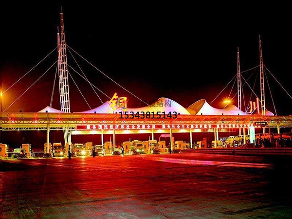 中等強度的PVC膜:其厚度僅0.61mm,但它的拉伸強度相當于鋼材的一半。中等強度的PTFE膜:其厚度僅0.8mm,但它的拉伸強度已達到鋼材的水平。膜材的彈性模量較低,這有利于膜材形成復雜的曲面造型。其極輕的自重很好的滿足了大跨建筑的要求,能在很大程度上降低大跨建筑的總造價。