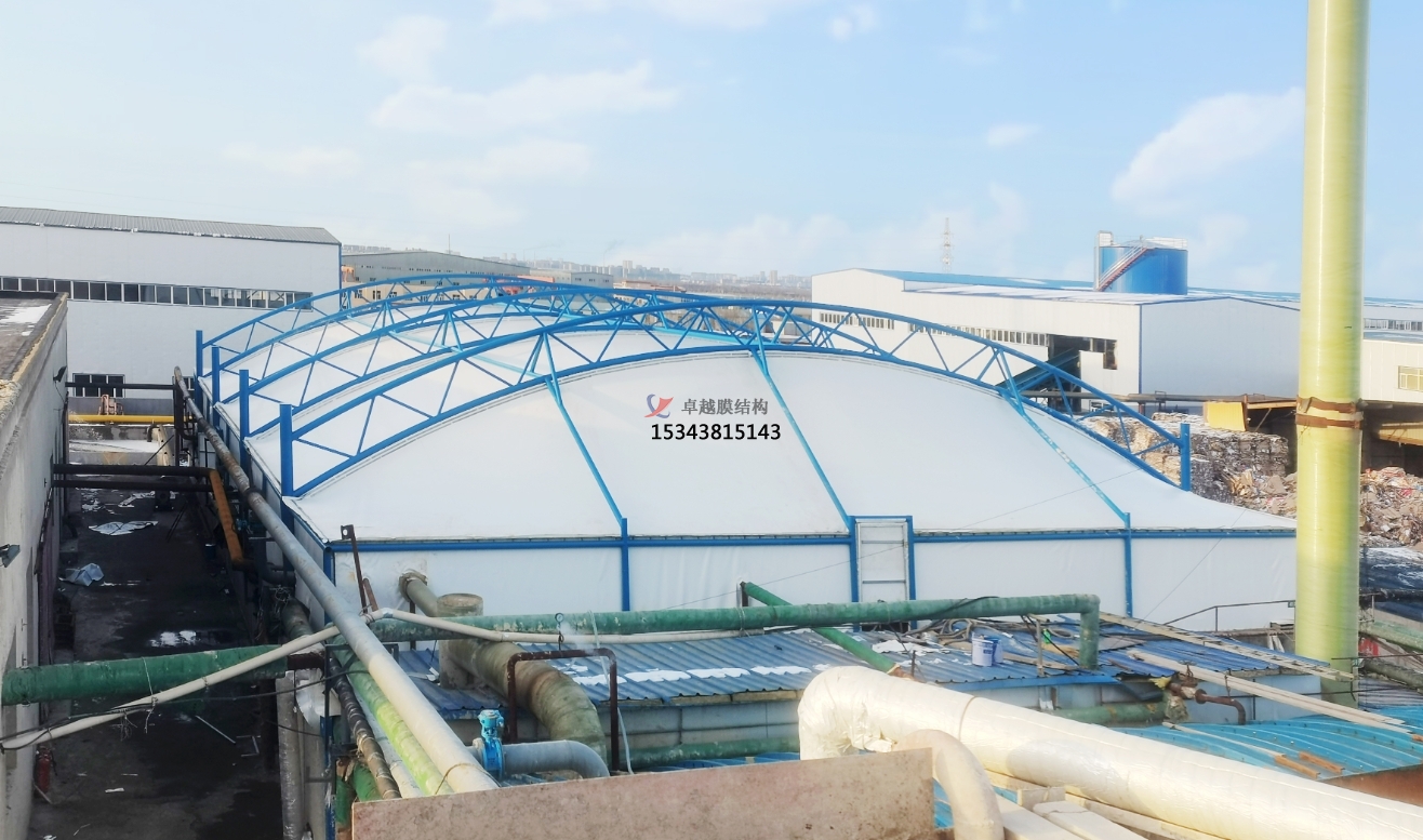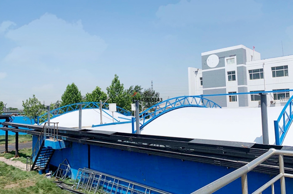污水池反吊膜技術(shù)是一種利用膜材反吊的原理,將鋼結(jié)構(gòu)在外將膜材懸吊,利用膜材的氣密性特點(diǎn),將廢氣密封在一個(gè)密閉的空間,進(jìn)而將凈化后的廢氣排出池外,達(dá)到排放標(biāo)準(zhǔn)的技術(shù)。它采用以鋼構(gòu)為支撐,膜材反吊覆蓋的膜結(jié)構(gòu)形式,即抗腐蝕能力很強(qiáng)的新型環(huán)保膜材將廢氣量住,而鋼結(jié)構(gòu)則在外面將膜懸吊起來(lái)。