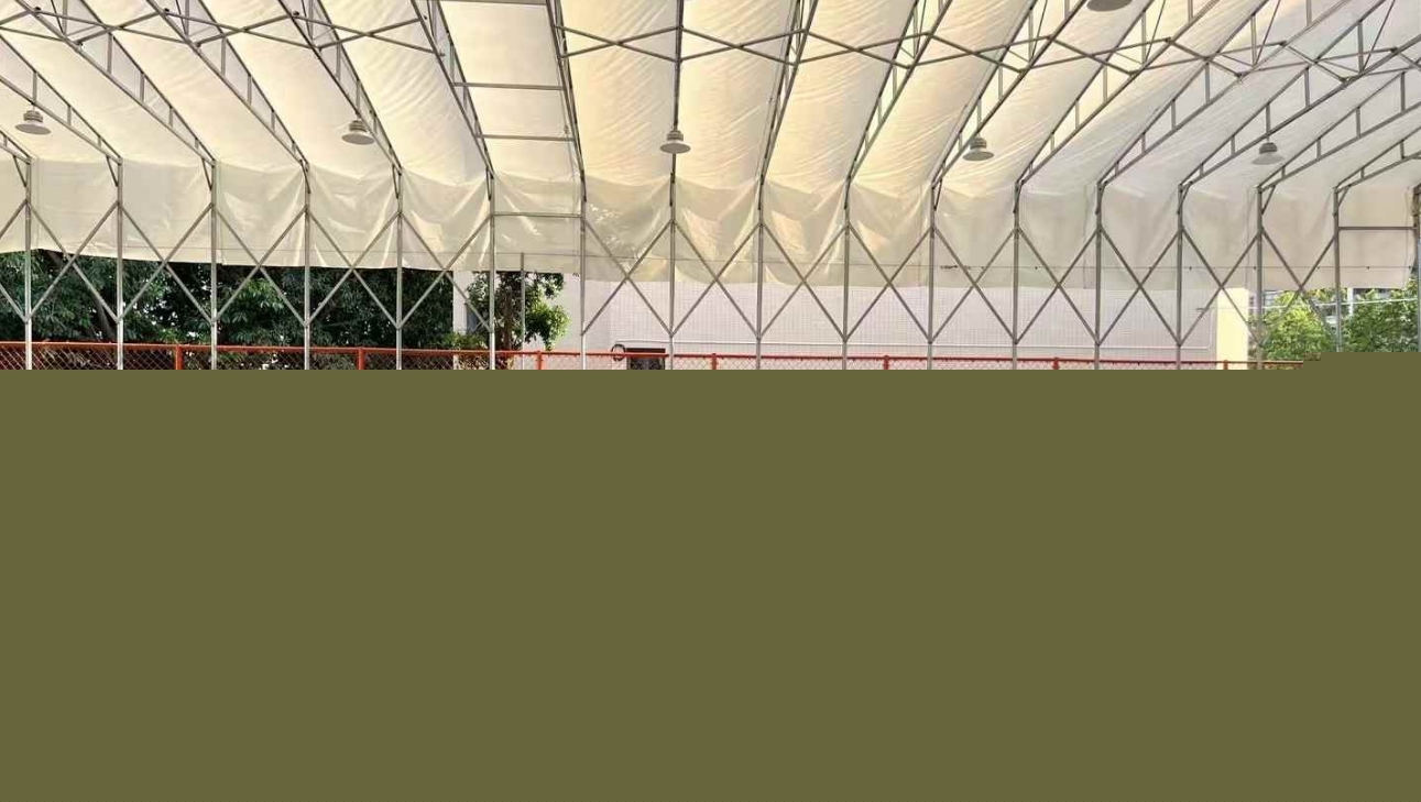 籃球場膜結構,以高強度膜材構成,采用先進的張拉技術,形成曲面覆蓋體系。其骨架采用碳鋼或鋁合金材料,經(jīng)特殊焊接工藝制成。膜結構自重輕,抗風壓性能優(yōu)良,確?;@球場安全穩(wěn)固。在保證籃球場美觀的同時,提供舒適的運動環(huán)境。