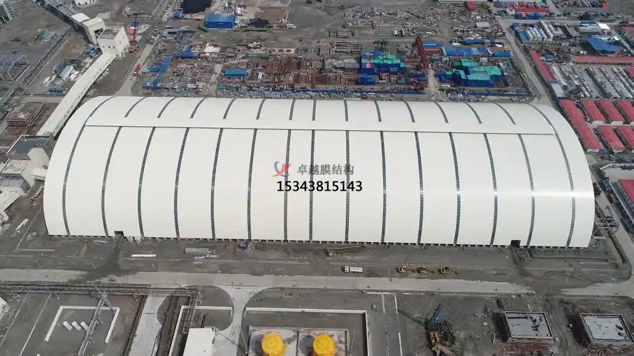 防塵與減排:膜結(jié)構(gòu)煤棚通過全封閉設(shè)計(jì),有效阻止了煤炭裝卸過程中產(chǎn)生的粉塵外泄,減少了空氣污染。同時,內(nèi)置的除塵系統(tǒng)可進(jìn)一步降低棚內(nèi)粉塵濃度,符合嚴(yán)格的環(huán)保排放標(biāo)準(zhǔn)。