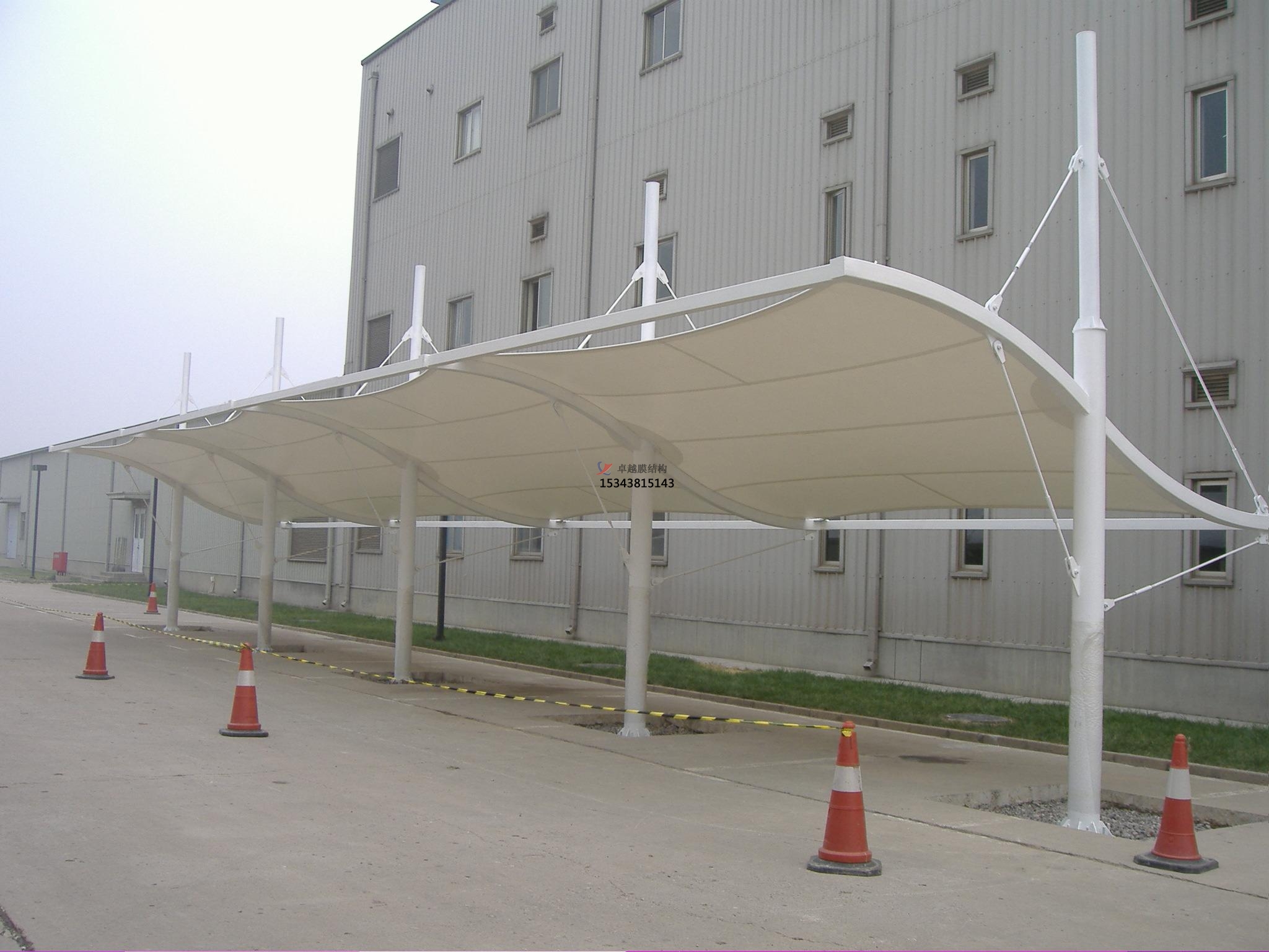用曲面有限單元建立的商業(yè)廣場雨棚搭建找形及內(nèi)力計算方法極小曲面具有非常完美的表面形狀和應力狀態(tài),是商業(yè)廣場雨棚搭建合理的理想初始狀態(tài)。所謂極小曲面是指在給定邊界條件下面積更小的曲面。在這個曲面上任意一點的應力都相等。發(fā)達更好的從六十年代起開始對商業(yè)廣場雨棚搭建找形提出多種計算方法,如物理模型法,力密度法,動力松馳法等,到目前為止以有限元法為先進、普遍采用的方法。不僅國內(nèi),迄今國外的計算理論也都是以平面膜單元作為商業(yè)廣場雨棚搭建的計算模型。該方法是從剛性板殼大變形理論移植過來的。商業(yè)廣場雨棚搭建作為只能抗拉的軟殼體是不適宜采用這種平面單元的,其缺點是需要過多的平面內(nèi)位移來滿足平衡的要求,而實際情況是只需要一定的平面外和平面內(nèi)的位移及曲率變化就可以了。其后果就是在后面要進行的內(nèi)力計算時,代入真實材料常數(shù)后,由于前面找形得到的極小曲面與實際可能存在的商業(yè)廣場雨棚搭建形狀的差距在視覺上可能不大,但對計算來說卻是不能忽視的,因此計算很容易發(fā)散或出現(xiàn)皺折。這也是前面其他方法的共同缺點,他們往往把這一連貫的過程區(qū)分成理想化的找形和實際驗算兩個階段,也就不能保證找出的形狀都能用真實的膜材建成等應力極小曲面。