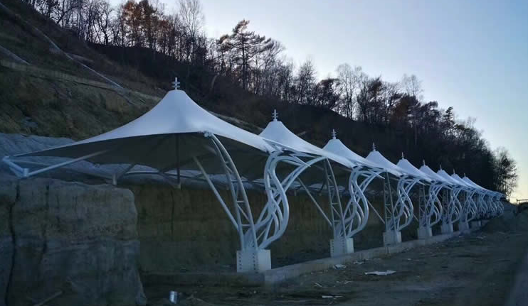 工程施工地址:黑龍江伊春市嘉蔭縣 膜材選材型號(hào):法國(guó) 法拉利膜材PVDF 1202T2 選用膜材拉力:5900N-6900N 鋼構(gòu)選用材料: 鞍鋼生產(chǎn)的Q235B高頻焊管及Q345無縫鋼管 工程施工周期:總工期29日歷天 索膜結(jié)構(gòu)形式:管桁架四邊張拉索膜結(jié)構(gòu)看臺(tái) 工程完工面積:膜材展開面積589㎡" />