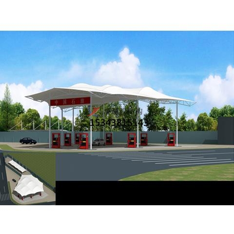 膜結(jié)構(gòu)加油站的柔性使其在任一荷載作用下均以有利的形狀承載。當(dāng)然,結(jié)構(gòu)的安置和形狀要根據(jù)荷載狀況來進(jìn)行規(guī)劃和調(diào)整。規(guī)劃要確何膜面與其輔助結(jié)構(gòu)和諧工作,以防止力在膜面或輔助結(jié)構(gòu)上會(huì)集而達(dá)結(jié)構(gòu)破壞的臨界值。