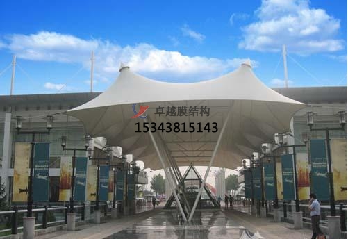 一個城市的中心區(qū)反映一個城市的地理風貌和民族風情,同時,也是一個城市文化發(fā)展程度的標志。而景觀設計要求其具有廣泛的可讀性、雅俗共賞,既有超凡脫俗的藝術(shù)價值,又能使大眾喜聞樂見與大眾息息相通。膜結(jié)構(gòu)以其輕盈飄逸的造型、柔美并帶有力量的曲線和大跨度和大空間的鮮明個性和標識性,應用于城市小品設計中。