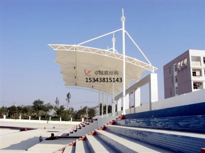 張拉膜看臺主要用于各類地方體育場主席臺雨棚,各類學(xué)校體育場看臺雨棚遮蓋,我公司是國內(nèi)較早從事大懸挑張拉膜結(jié)構(gòu)看臺設(shè)計施工的專業(yè)廠家,下面介紹一下我們在昆明市周邊縣市完工的一些張拉膜看臺設(shè)計施工案例,我公司先后在張家口市周邊承接了昆明市第八中學(xué)看臺雨棚、昆明市第三中學(xué)看臺罩棚、昆明市第十四中學(xué)張拉膜看臺遮陽棚張拉膜看臺遮陽棚等設(shè)計施工項目,簡介如下: