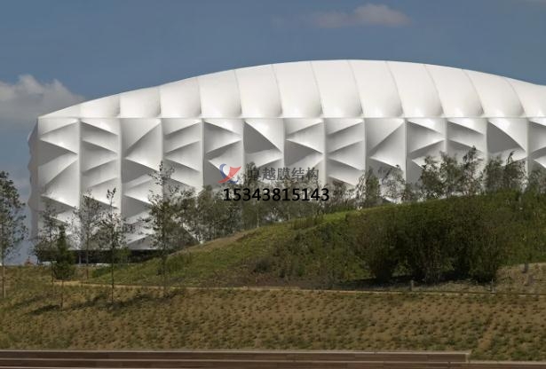 場(chǎng)館高30m,面積兩萬(wàn)平方米,外敷可收回PVC膜,膜在后面的結(jié)構(gòu)的效果下構(gòu)成美麗的崎嶇。透光的外表皮能夠使得場(chǎng)館在白天能夠十分少的依賴(lài)人工照明。
