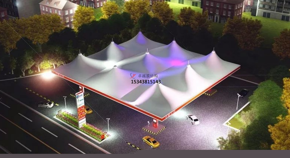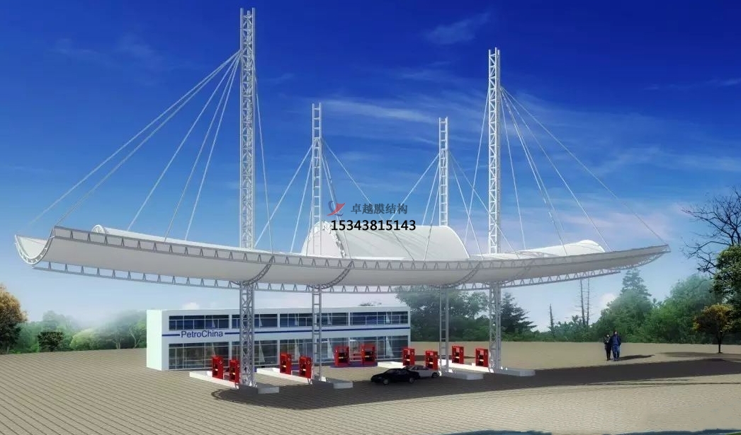 加油站膜結(jié)構(gòu)憑借其顯著區(qū)別與其他結(jié)構(gòu)的獨(dú)特外形,能迅速的抓住顧客的眼球,瞬時(shí)拉近與顧客的距離。