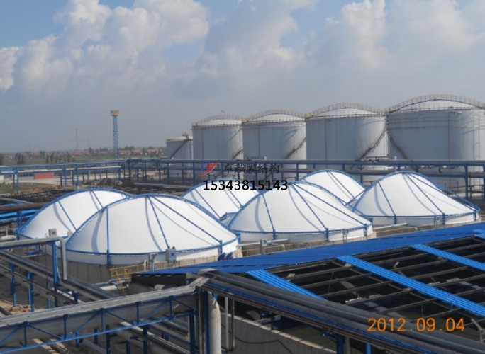 便于與現(xiàn)場(chǎng)設(shè)備管道密封連接:所有立面的膜結(jié)構(gòu)均可按需要現(xiàn)場(chǎng)開洞,現(xiàn)場(chǎng)熱熔焊接恢復(fù)氣密性。