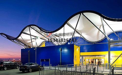 膜結(jié)構(gòu)景觀停車棚除前面所述外, 膜結(jié)構(gòu)景觀與其它結(jié)構(gòu)配合發(fā)展的空間很大, 會使建筑結(jié)構(gòu)形式變化更多、更新。膜結(jié)構(gòu)景觀需要大量迭代計算, 而且要考慮非線性因素, 只有隨著計算機才能完成。它是一種全新的建筑結(jié)構(gòu)形式, 它的結(jié)構(gòu)形式的美蘊含著技術(shù)和藝術(shù)美。