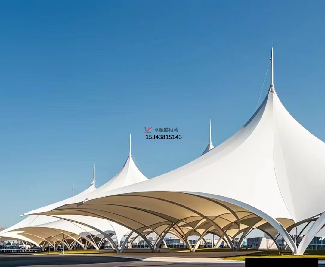 在各大交通樞紐,諸如機場、火車站的站前廣場,膜結構雨棚的設計既便利了旅客出行,又以其醒目的形態(tài)有效引導了人流。以北京首都國際機場的T3航站樓為例,其前方的巨大膜結構雨棚宛如一只振翅欲飛的鯤鵬,氣勢恢宏。它不僅滿足了實際使用需求,更成為機場一道別具一格的風景線,給過往旅客留下了難以忘懷的印象。
