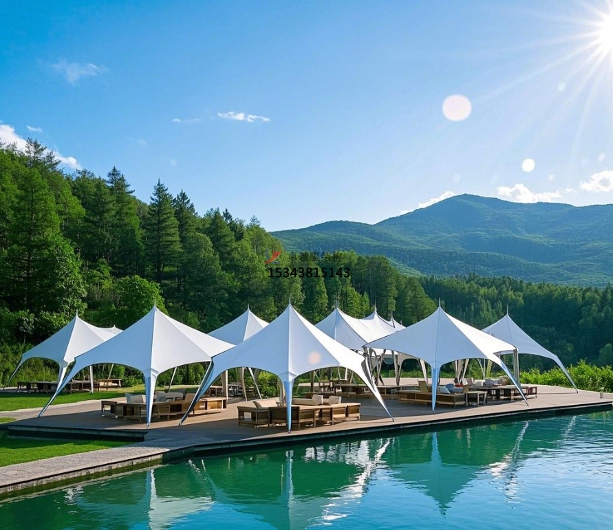 帳篷酒店膜結(jié)構(gòu)在各類旅游場景中廣泛應用。在山地旅游景區(qū),膜結(jié)構(gòu)帳篷可依山勢而建,巧妙融入自然山林景觀,為游客提供親近山林、聆聽鳥鳴的住宿體驗;海濱度假勝地,帳篷酒店膜結(jié)構(gòu)憑借其輕盈造型與抗風性能,矗立在沙灘旁,讓游客伴著海浪聲入眠;在草原旅游區(qū),大型膜結(jié)構(gòu)帳篷酒店可作為綜合性住宿場所,內(nèi)部設(shè)置多個房間與公共區(qū)域,既能滿足游客住宿需求,又能舉辦篝火晚會等特色活動,豐富游客的草原之旅。