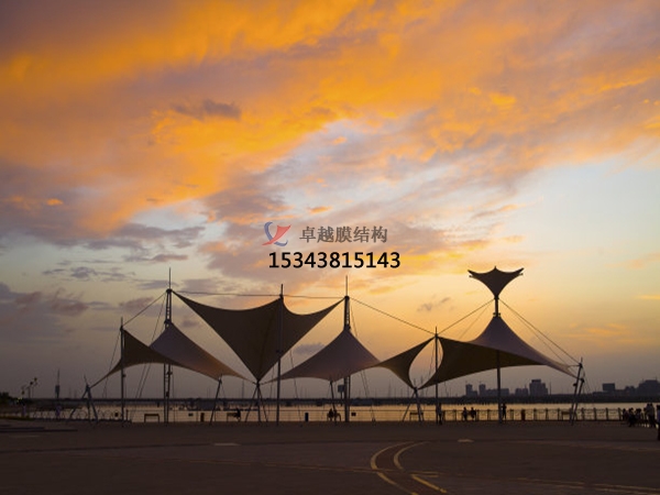 近年來,在人口密集的大城市,在居住區(qū)周邊配置綠色空間并有人行步道。居民可以在不受車輛的影響下,在居住區(qū)附近的街心地帶輕松愉快地散步、休憩,而感到十分愜意。在綠色空間中構(gòu)造一座膜小品或者走廊、亭臺水榭、休憩遮陽傘等,不僅生動地美化了環(huán)境(如同廣闊綠洲中的點點白帆),又有很強的功能性(人們可以在行走之暇小憩一會兒),而且增加了空間的參差感。
