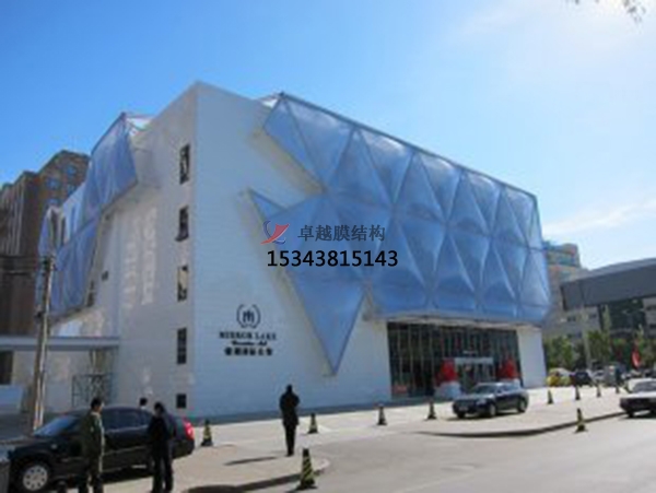 因?yàn)槟げ牧暇哂型腹庑?,?shí)際結(jié)構(gòu)中可以清楚地看見焊縫,所以裁剪縫的布置一定要規(guī)則、合理,更好能形成一些漂亮的圖案以增加結(jié)構(gòu)的美感。如果膜表面設(shè)置有壓索或脊索, 那么更好使裁剪縫與壓索或脊索重合,使索不至于打亂焊縫的圖案布置。