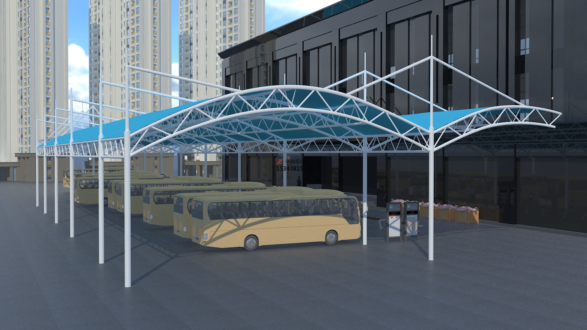 結(jié)構(gòu)形式:張拉膜結(jié)構(gòu)雨棚