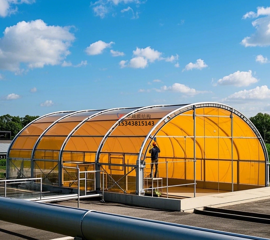 在城市生活垃圾中轉站中,膜結構罩棚應用普遍。如北京某區(qū)的多個生活垃圾中轉站,采用充氣式膜結構罩棚,不僅解決了垃圾異味擾民問題,還提升了垃圾轉運效率,周邊居民對環(huán)境滿意度顯著提高。