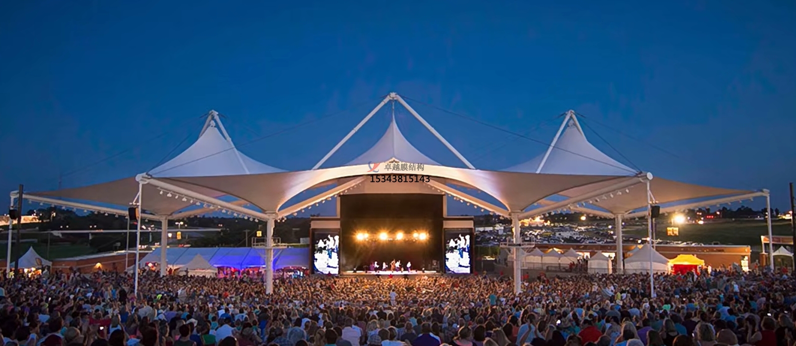 舞臺(tái)膜結(jié)構(gòu)遮陽(yáng)棚廣泛應(yīng)用于各種戶(hù)外演出和活動(dòng)中,如音樂(lè)會(huì)、戲劇表演、舞蹈演出等。此外,它還可以作為臨時(shí)展覽、會(huì)議等活動(dòng)的遮陽(yáng)設(shè)施。隨著戶(hù)外活動(dòng)和露天演出的增多,舞臺(tái)膜結(jié)構(gòu)遮陽(yáng)棚的實(shí)用性也越發(fā)凸顯。