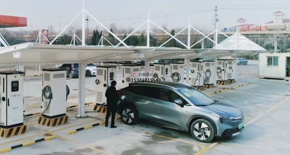 此外,膜結(jié)構(gòu)罩棚的空間利用率高,能夠在有限的面積內(nèi)容納更多的充電車位,滿足日益增長的充電需求。其靈活的布局設(shè)計(jì)也使得充電站能夠根據(jù)實(shí)際情況進(jìn)行調(diào)整,適應(yīng)不同場(chǎng)景的需求。