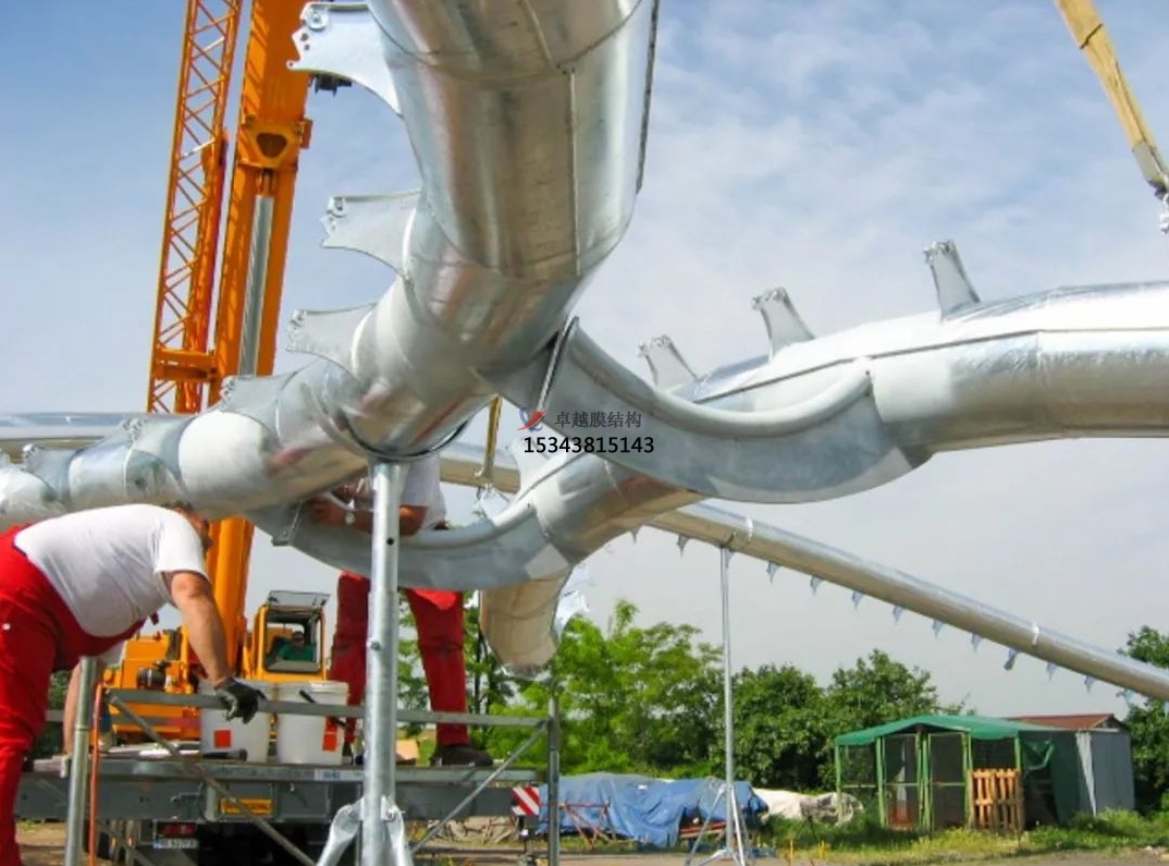 充氣膜和張拉膜方便在節(jié)日期間快速豎立并吊裝到位。管狀骨架可以與織物覆蓋物一起拆卸和裝箱。