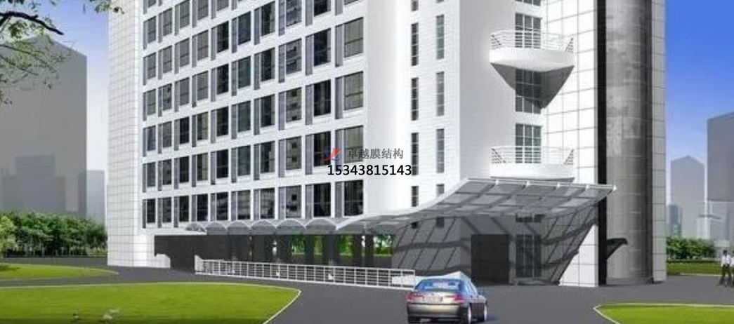 車庫(kù)入口膜結(jié)構(gòu)雨棚的設(shè)計(jì)過(guò)程中,通過(guò)合理使用鋁合金材料,可以使得整個(gè)結(jié)構(gòu)更加牢固可靠。