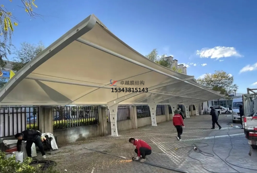 優(yōu)質(zhì)的膜結(jié)構(gòu)材料具有很強(qiáng)的耐久性,能夠抵抗風(fēng)雨、紫外線等自然因素的侵蝕。對(duì)于7字型車棚來說,這種耐用性可以保證其長(zhǎng)期穩(wěn)定地為車輛提供保護(hù)。同時(shí),膜結(jié)構(gòu)的維護(hù)相對(duì)簡(jiǎn)單,定期檢查膜材的表面有無破損、積水等情況,進(jìn)行簡(jiǎn)單的清潔和修補(bǔ)即可,不需要復(fù)雜的維護(hù)程序和高額的維護(hù)成本。