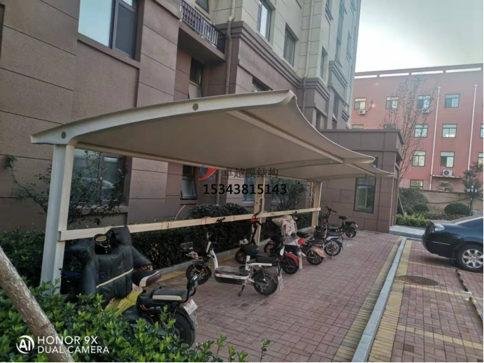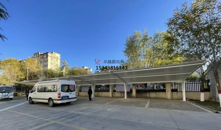 除了停車功能外,7字型膜結(jié)構(gòu)車棚的一側(cè)可以與建筑物相連,形成一個(gè)過渡空間。這個(gè)過渡空間可以有多種用途,比如作為行人的遮雨棚、自行車停放處,或者設(shè)置為休息區(qū)。這種多功能的設(shè)計(jì),為人們的生活和使用帶來了更多的便利,提升了整個(gè)區(qū)域的實(shí)用性。