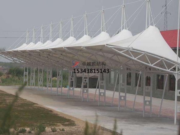車棚是一種古老的建筑形式,自有史以來就被用來作為房屋和簡易的遮蔽物。如今隨著建筑技術(shù),計(jì)算機(jī)技術(shù)和新材料研究的飛速發(fā)展,性能優(yōu)良的新型膜材被用于建造永久性的車棚結(jié)構(gòu),即膜結(jié)構(gòu)車棚,這種結(jié)構(gòu)的車棚一般由索和膜材這些柔性材料張拉而成。