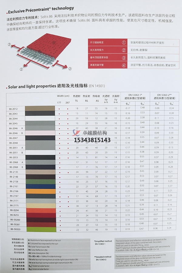 法拉利膜材十多年來,法拉利(PVDF)表面處理的復(fù)合膜材被應(yīng)用在全世界重要的織物建筑工程中。現(xiàn)在,第代膜材再次確認(rèn)了這一出眾材料性能的更新發(fā)展。法拉利研發(fā)了第代材料正是為了滿足建筑師和業(yè)主在新世紀(jì)之初對(duì)于織物建筑提出的要求。這一 全新的膜材得益于更新的科研技術(shù),即將PVDF和硬化介體完美地結(jié)合。這種特殊的結(jié)合明顯地提高了材料的機(jī)械強(qiáng)度、使用壽命,并能長(zhǎng)期保持織物建筑的原始 美觀。第代膜材在積累了10多年的經(jīng)驗(yàn)的基礎(chǔ)上,可以提供專業(yè)保證。法拉利現(xiàn)在能夠根據(jù)要求和每個(gè)項(xiàng)目的具體情況,提供12年質(zhì)量保證 (PRECONTRAINT702除外)。